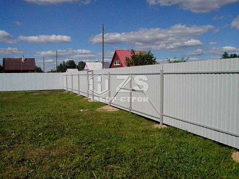 - Забор на столбах с утрамбовкой щебня из профнастила 40 метров